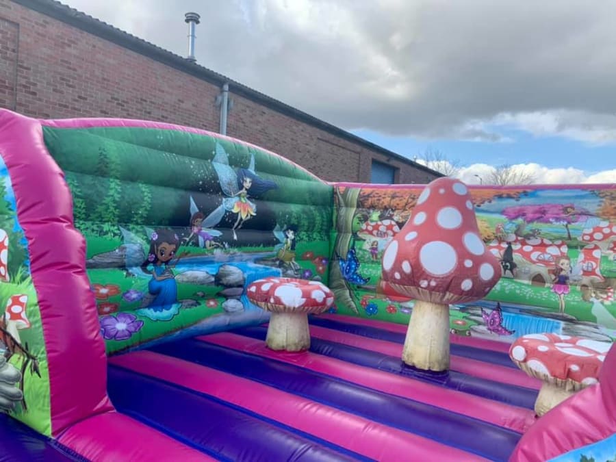 Step into a magical world with our Enchanted Forest Bouncy Castle & Slide Combo, a bespoke design made exclusively for Marshall’s Castles. This stunning bouncy castle features beautiful, hand-drawn artwork depicting a mystical forest setting, complete with vibrant toadstools on the bed for added fun. With the combination of bouncing and sliding, this inflatable is perfect for keeping children entertained for hours at any event.