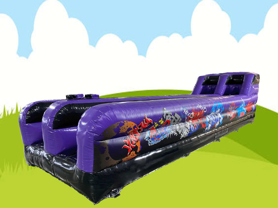 Get ready for an epic battle with the Graffiti Bungee Run, a high-energy inflatable that can be used by all ages as it comes with a selection on Bungee lengths, Suitable for both indoor and outdoor events. Players both run as far as possible down the inflatable lane sticking a Velcro puk to the top of the center wall, the winner is the player that makes it the furthest.—an experience that will keep both contestants and spectators entertained!